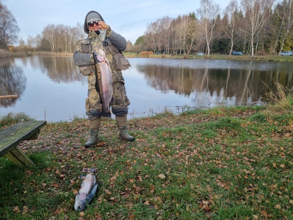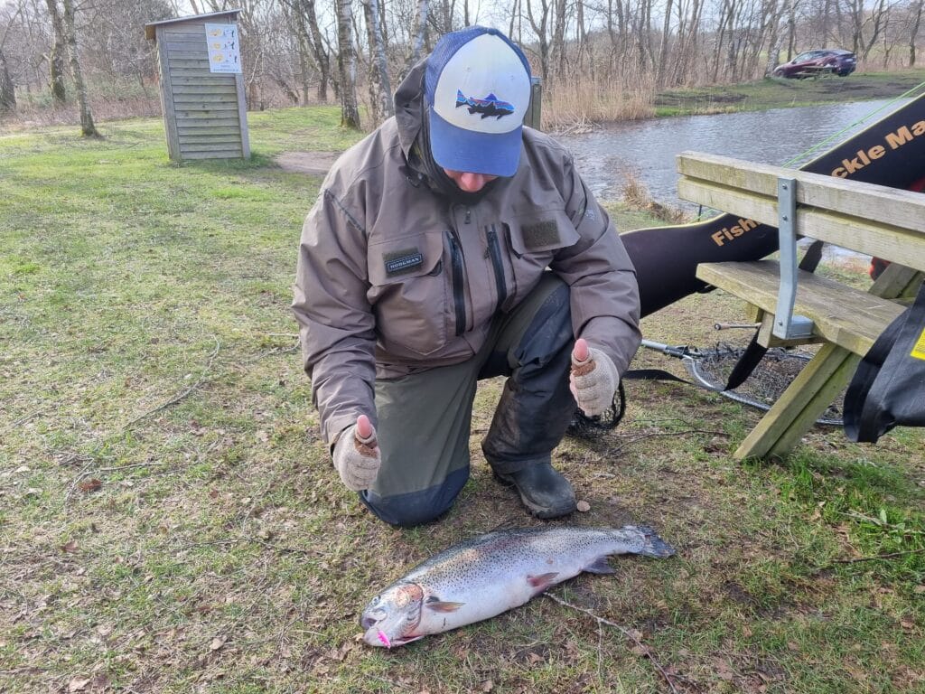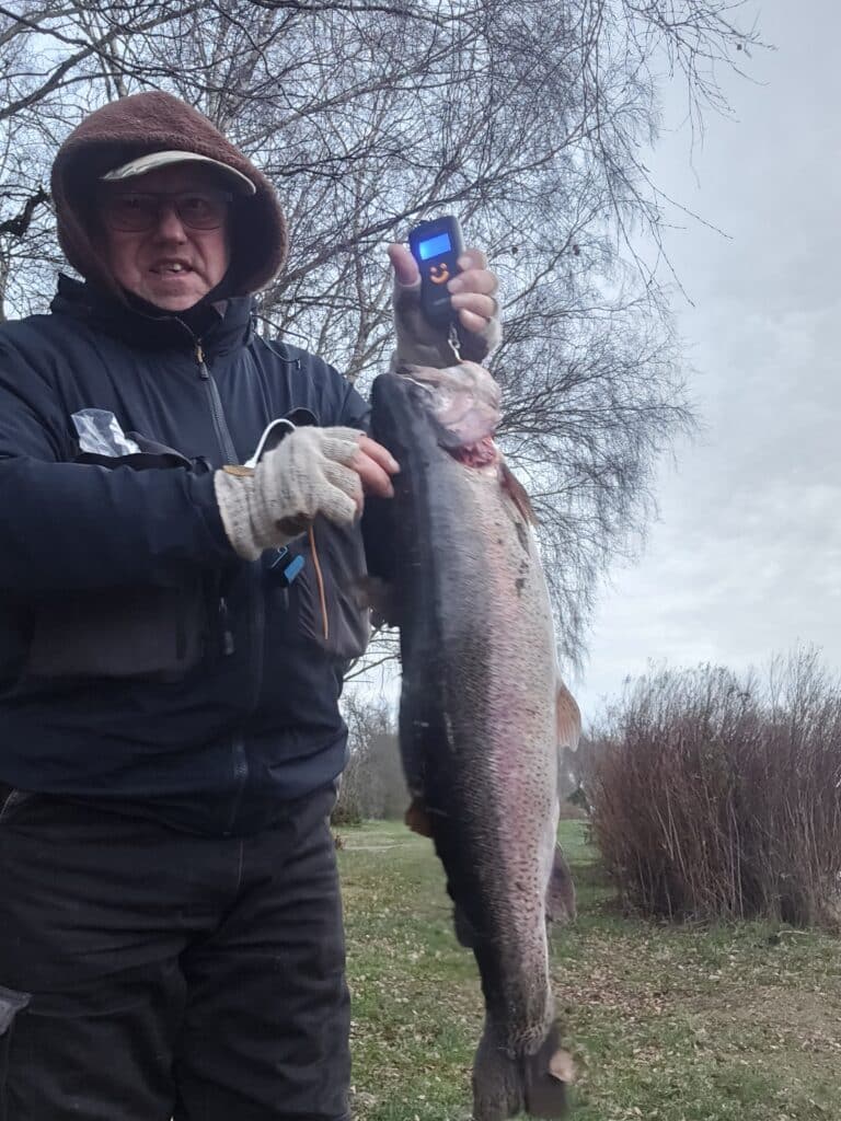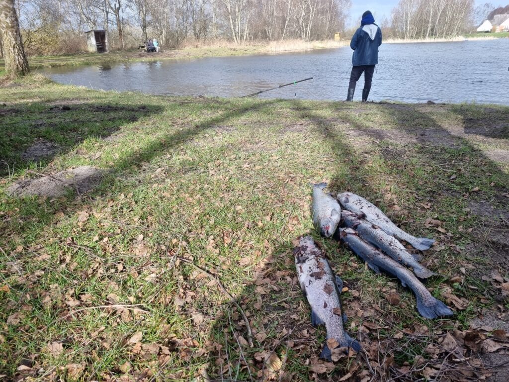 Det vil vi selvfølgelig fortsætte med, men der vil også begynde at dukke “vinterfisk” op. Og så taler vi altså fisk fra 3kg og opefter. I dag var så første udsætning, hvor det var tilfældet. Flere fisk på 3-6kg og lige “en rosin i pølseenden” på omkring 8 kg. 😀