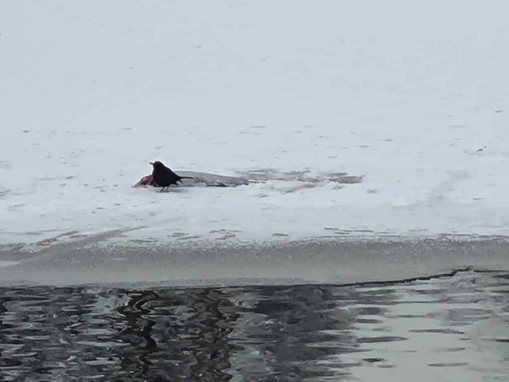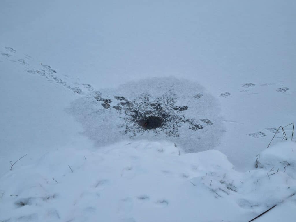 Gæster er der jo heller ikke mange af, eller i hvert fald ikke betalende “gæster”. For med åben vand i en Put&Take bliver det hurtigt tilholdssted for sognets oddere, hvilket der er mange spor af i sneen. 😄