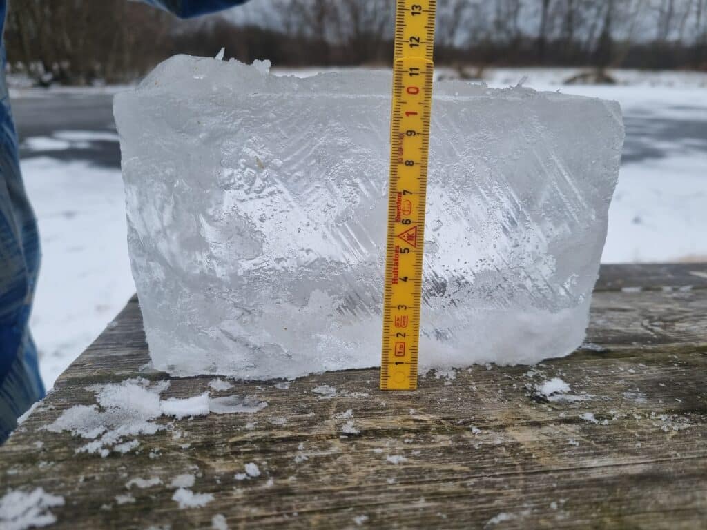 Så fik vi tø, men med små 10 cm is og hvis vejrmelding, der siger lige omkring frysepunktet de næste dage holder, ja så forsvinder isen altså ikke bare lige…😃
